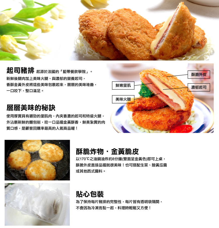 食用方法:不需解凍,以170℃之油鍋炸6分鐘後即可。建議油炸4分半時可翻面